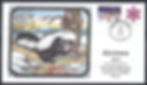 For three decades l've been creating a Christmas hand painted First Day Cover that depicts American wildlife. This series is unique to Collins covers and many collectors eagerly await this once-a-year happening. This year's edition features the striped skunk which is foraging for acorns. The background features a snow-covered lake and a white-crested mountain. Eastern Skunk - Collins #I5501 at $15.00.